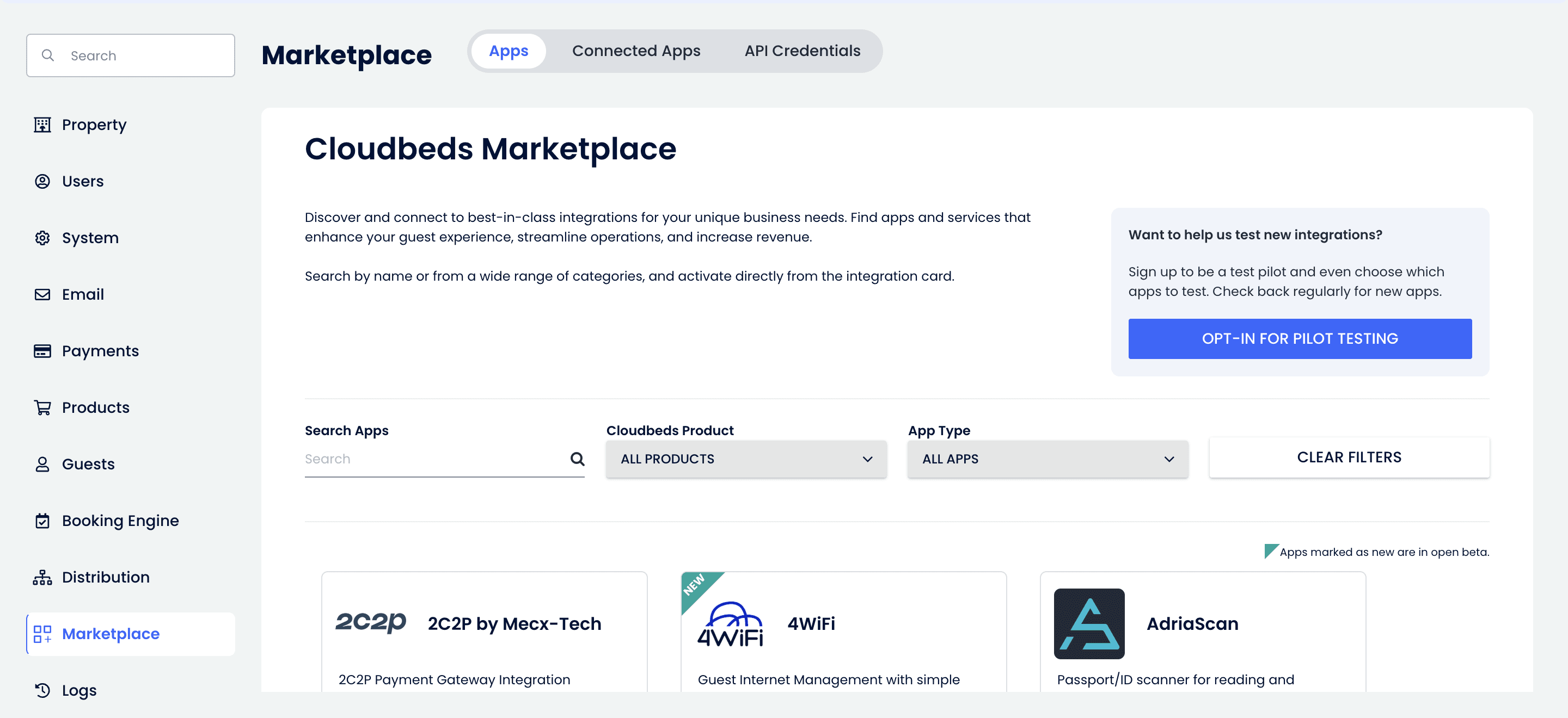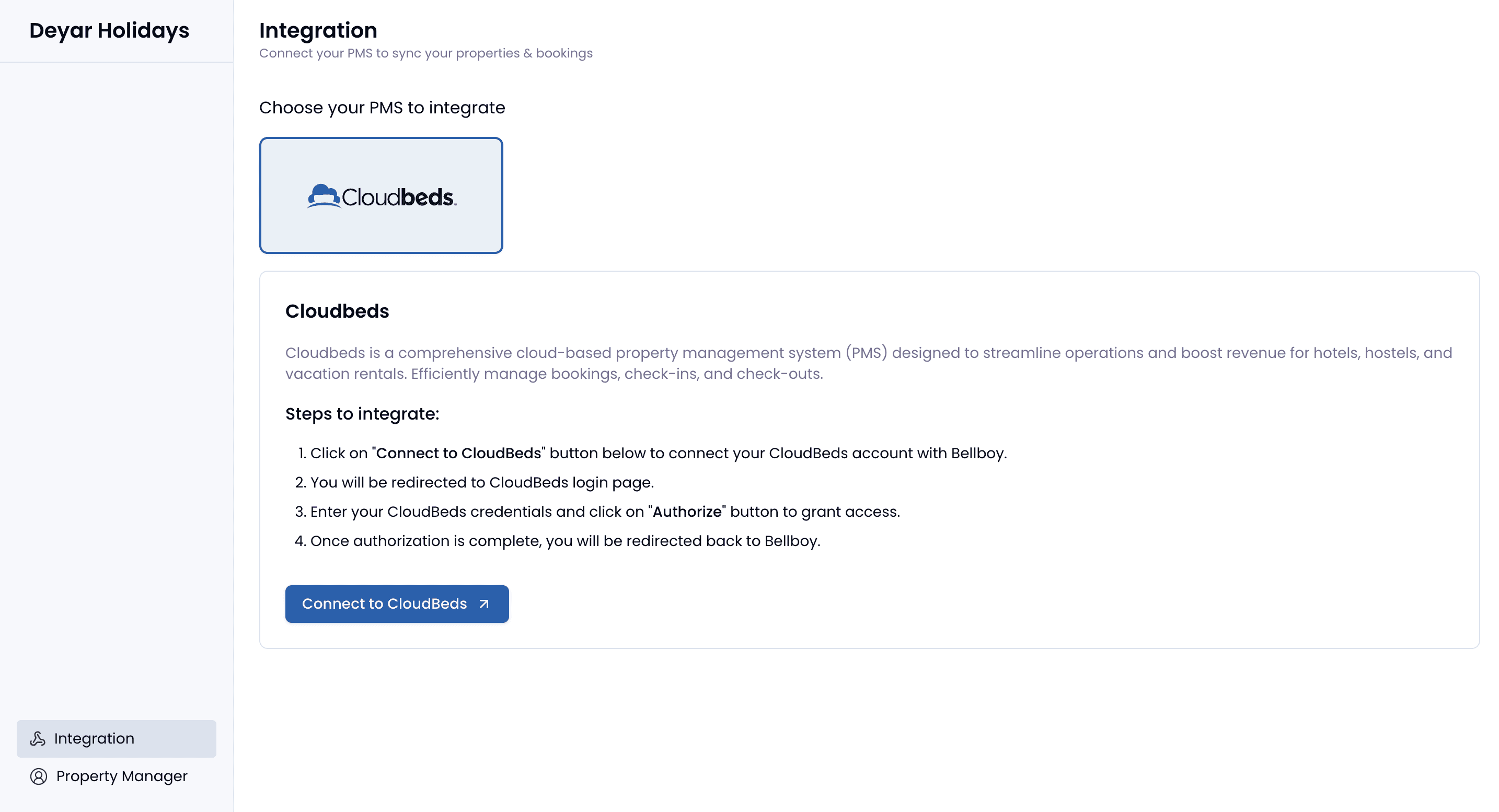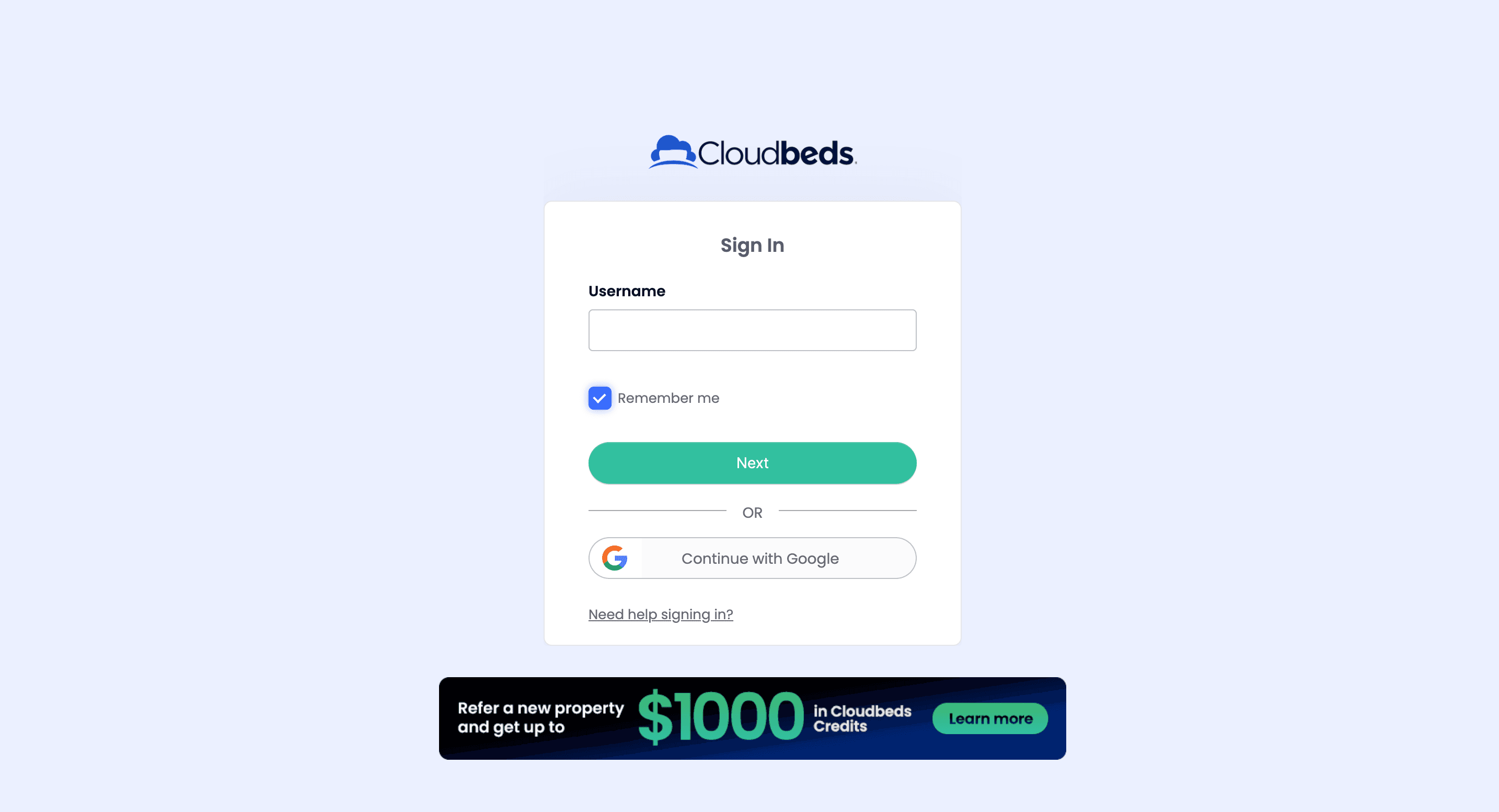 3. Select cloudbeds. Click on connect & you will be taken to the cloudbeds sign in portal.