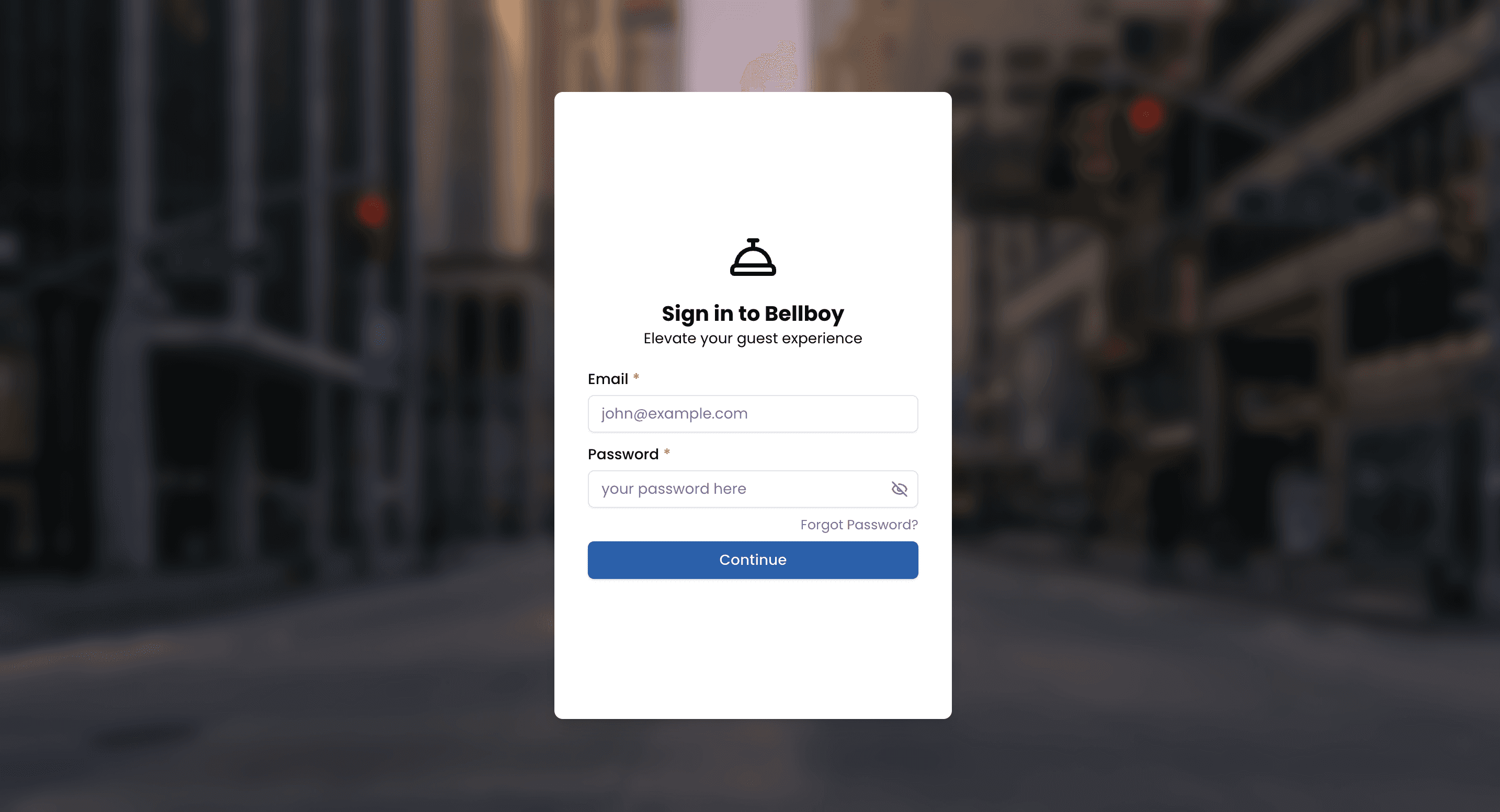 4. Enter your credentials - make sure you have a user type of admin or owner