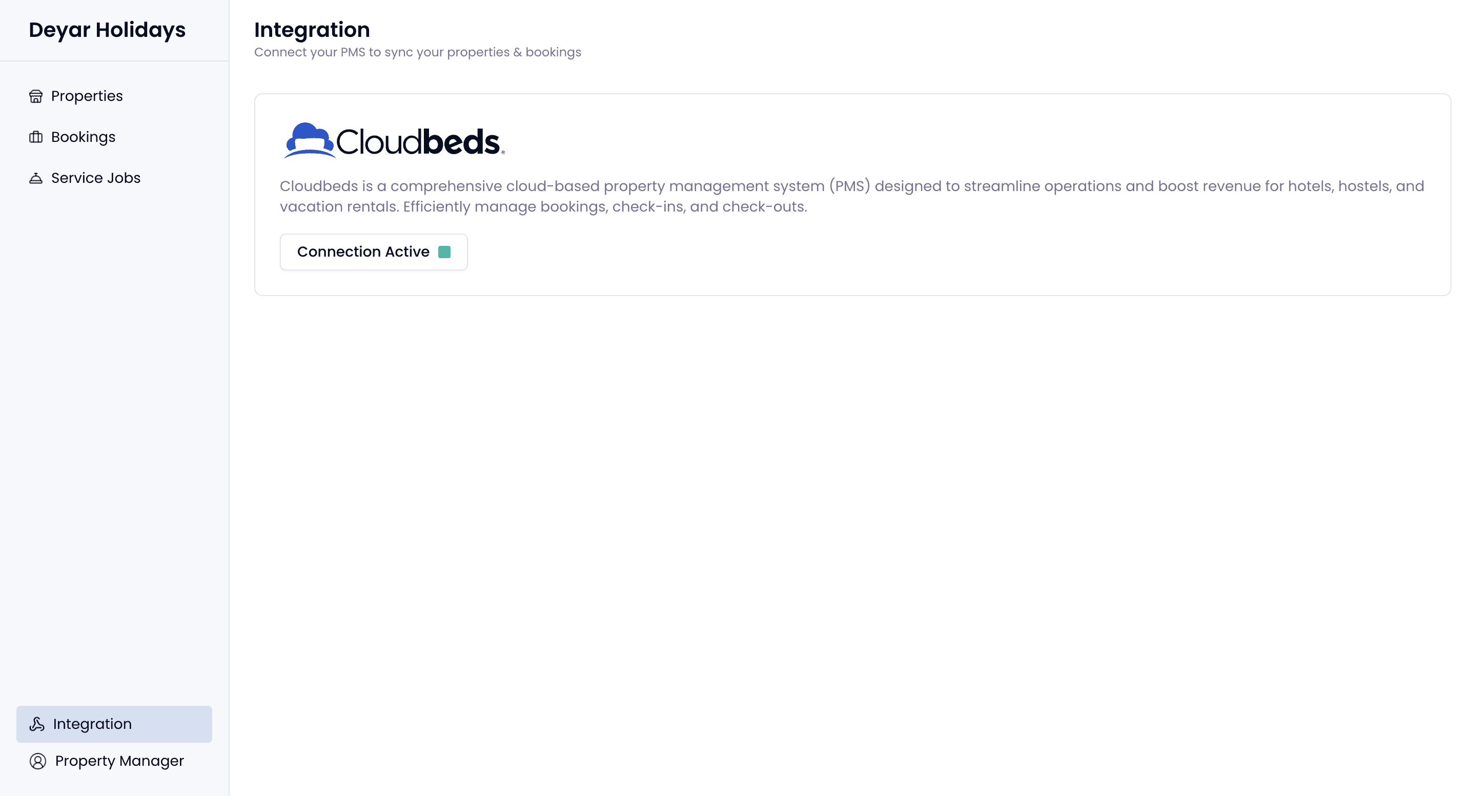 6. Integration is active. Check the property & bookings data by clicking on the tabs on the left